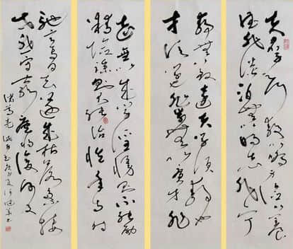 著名美学家宗白华先生在对"中国艺术意境"问题的论述中曾说:"道的生命和艺的生命,游刃于虚,莫不中音,合于桑林之舞,乃中经首之会。"剖析何健华先生的草书创作发现,其中笔墨规律、情感灌注,亦是极为符合这种中国艺术"天地絪緼,万物化醇"所生的审美音韵和艺术追求。如《念奴娇赤壁怀古》《沁园春·雪》等作品,起笔雄浑磅礴、点划磊落,其书写线条或粗或细,墨色或浓或淡、或枯或润,尤其是笔墨、章法的虚实矛盾调和之中,更可见其书风交互开合、摇曳生姿之情状,洒脱畅达、汪洋恣意之神境。笔者不禁心生感叹:笔势动静相彰若缥缈孤鸿,行笔遒劲灵婉似游龙之姿,这不仅体现了书法笔墨线条、结体布局的构成关系,也更彰显出中国书法"因情生文,因文见情"的艺术境界。