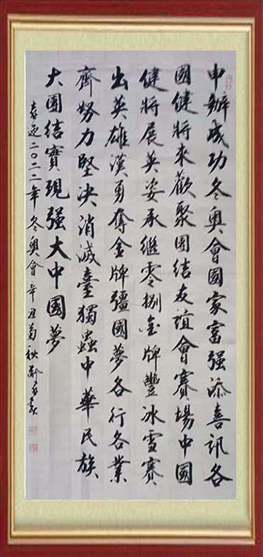 2005年结缘张贵银老师斧正,从汉隶鲜于璜碑,综合自身悟性,揉举重、体操、滑冰、舞蹈与书法于一体,善以隶、楷、行草,篆及小楷皆有独到之处,尤以隶书见长。气象雄伟、包罗万有、浑厚深沉、沧古森严、大气豪迈、神韵内藏、独具一格。经十几年的潜心研究和试验,于1992年获国家专利 ——《一种浮雕工艺毛笔》问世。